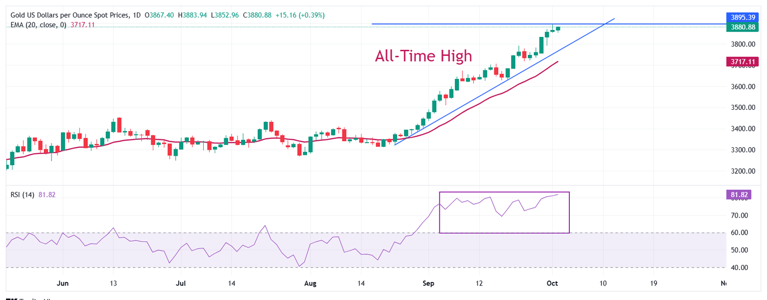 Oro Pronóstico: El XAU/USD se mantiene cerca de máximos históricos en torno a 3.900$