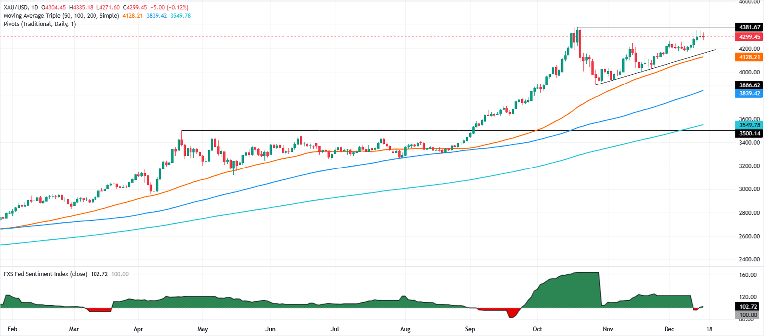 Análisis Técnico: La tendencia alcista del Oro se mantiene intacta por encima de 4.300$