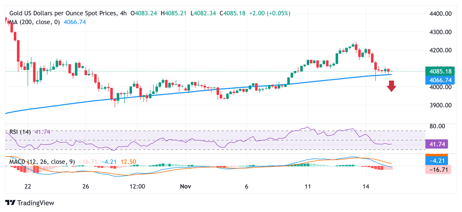 El Oro podría acelerar la caída por debajo del mínimo de la semana pasada, alrededor de la región de 4.032$