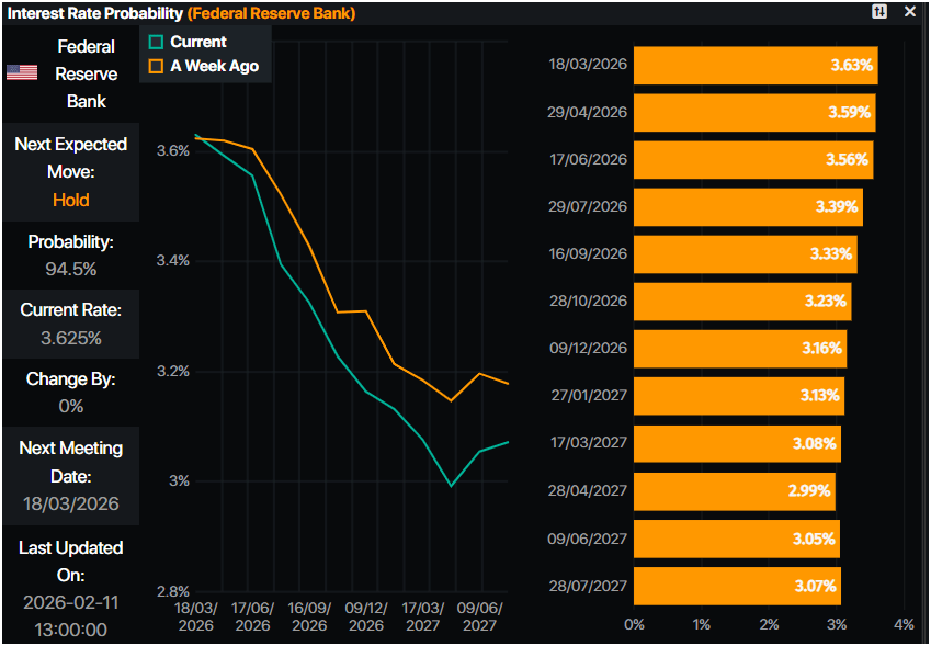 Los mercados monetarios están valorando una probabilidad del 100% de un recorte de tasas de la Fed en julio de 2026, según datos de Prime Market Terminal.