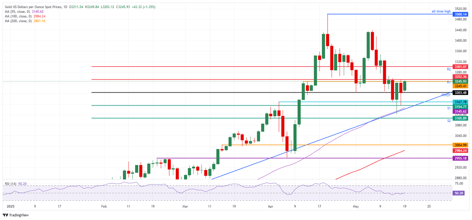 En el lado positivo, el nivel técnico crucial en 3.245$ (máximo del 1 de abril) está actuando como resistencia y podría ser difícil de recuperar. Una vez superado, la resistencia R1 en 3.252$ y la resistencia R2 en 3.301$ son los siguientes niveles a vigilar, aunque se necesitaría un catalizador importante para llegar allí.