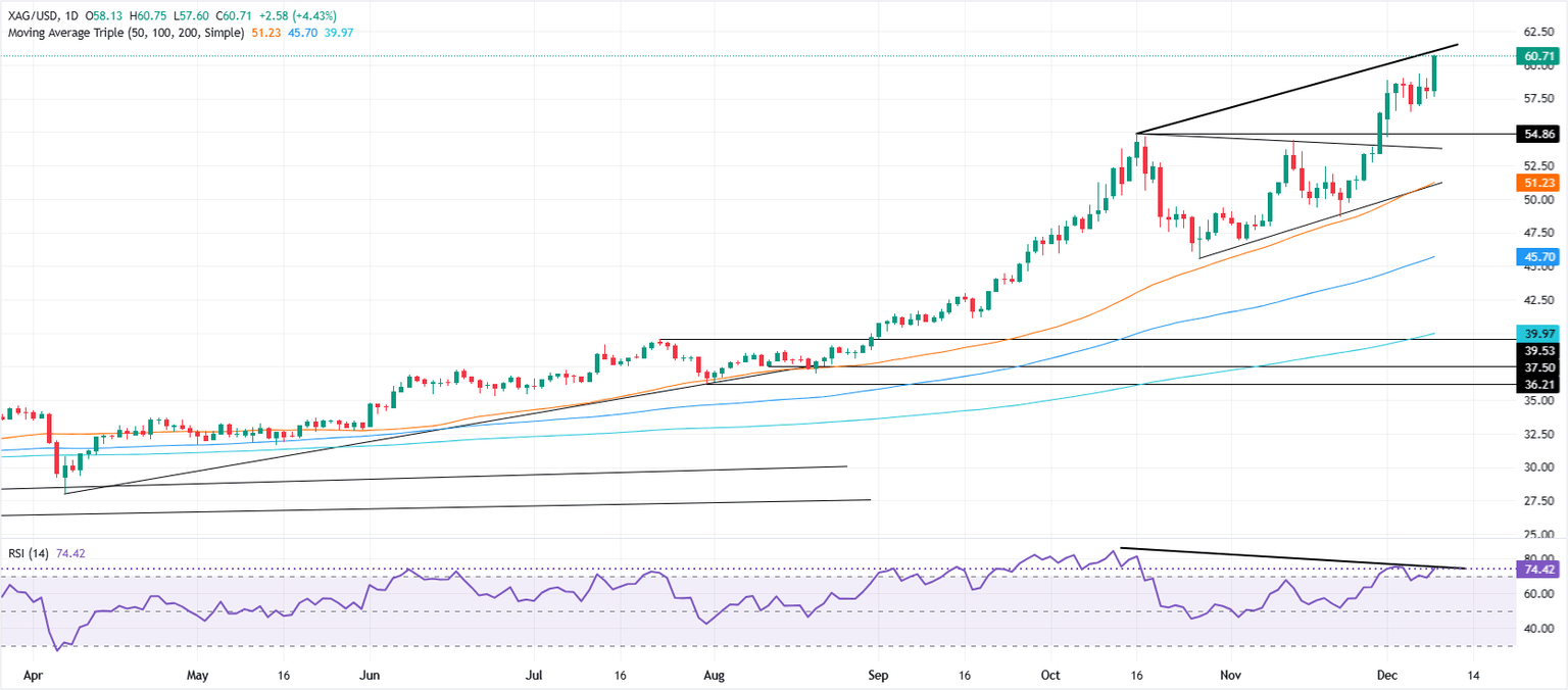 Pronóstico de la Plata: El XAG/USD alcanza un máximo histórico pero la divergencia del RSI sugiere cautela