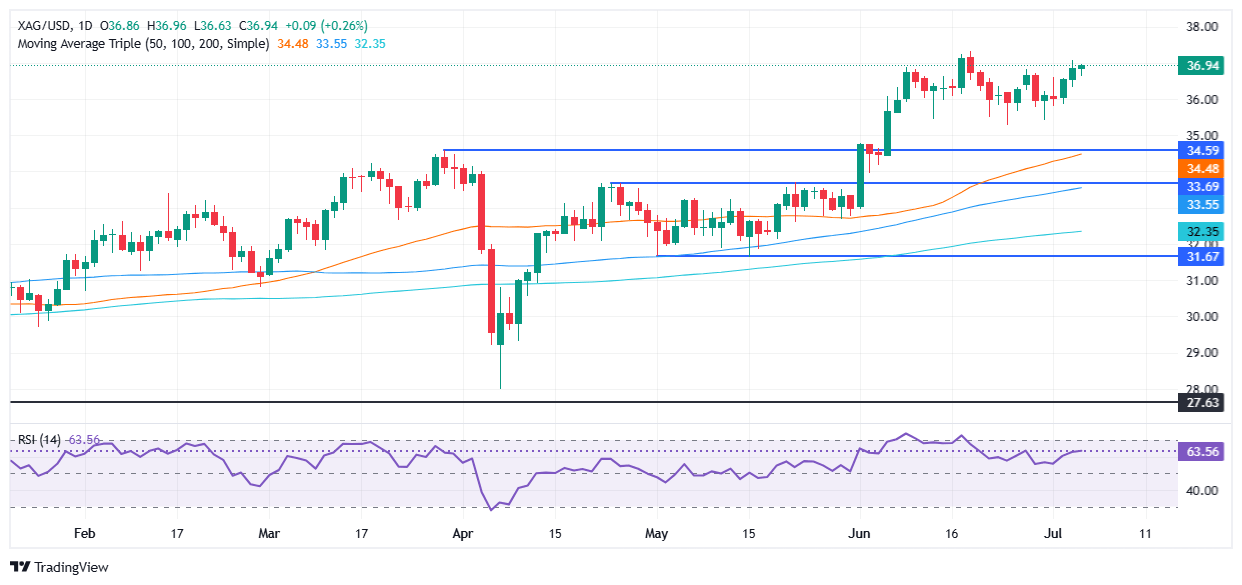 Análisis de la Plata: El XAG/USD se detiene cerca de los 37.00$