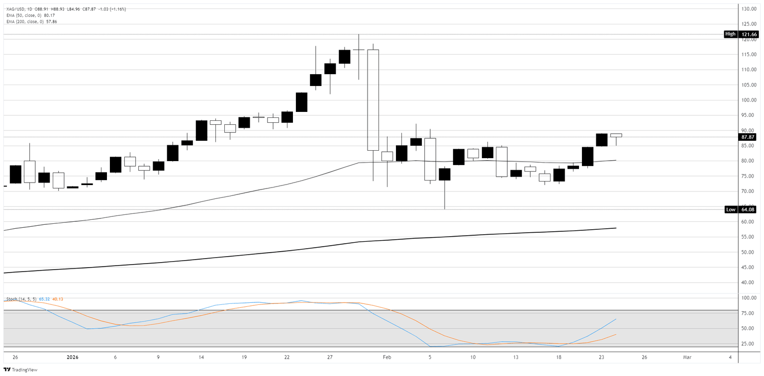 Plata Análisis del Precio: El XAG/USD retrocede desde los 89.00$ a medida que el repunte de aranceles se desvanece en la toma de beneficios