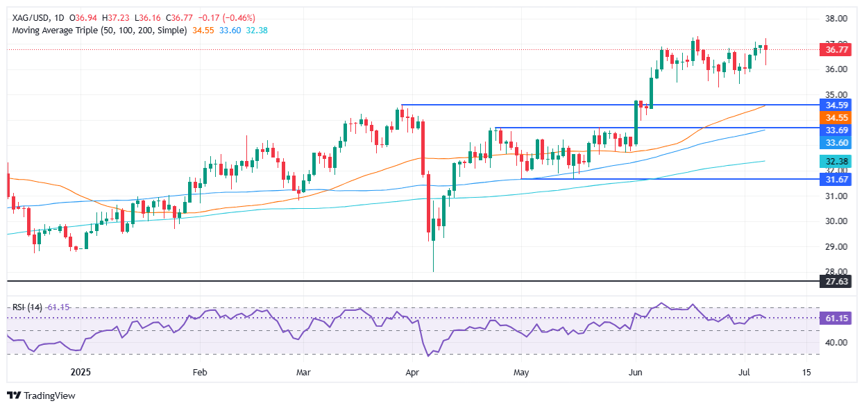 Análisis de la Plata: El XAG/USD cae por debajo de 37.00$ mientras los temores comerciales sacuden los mercados