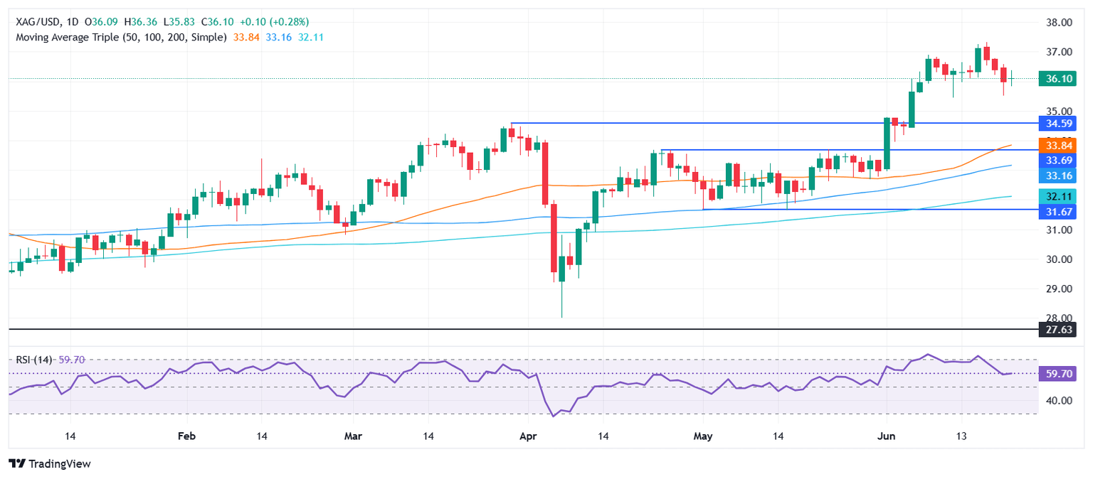 Análisis de la Plata: El XAG/USD se estabiliza por encima de 36.00$ mientras los alcistas recuperan el control