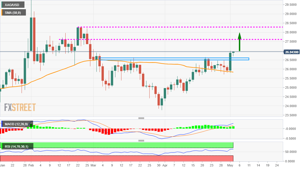 Plata Análisis del Precio: Los alcistas del XAG/USD esperan un movimiento sostenido por encima de 27.00$