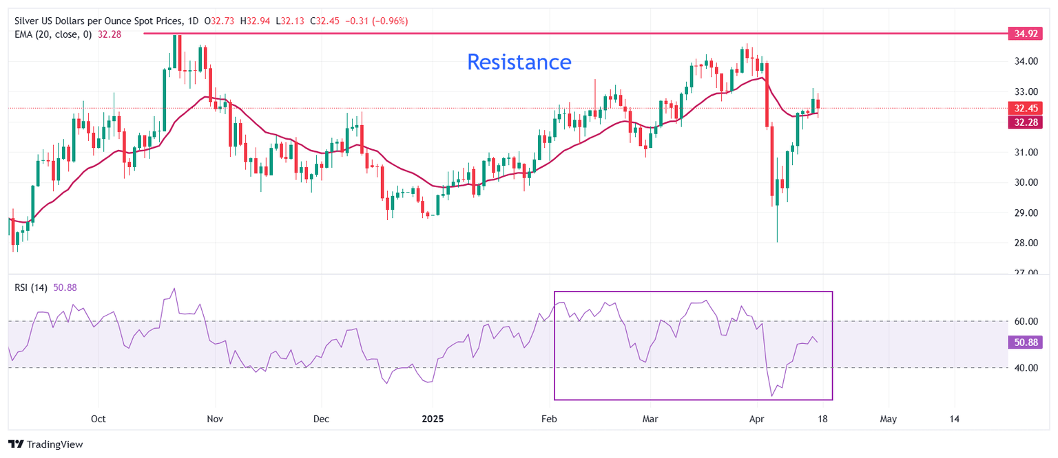 Esto parece ser una señal significativa de que Trump desea intercambios bilaterales favorables en lugar de pesadas políticas arancelarias recíprocas. Más resultados positivos de las negociaciones comerciales de Washington con otros socios comerciales serán favorables para el Dólar estadounidense. Tal escenario disminuirá la incertidumbre económica global, lo que llevaría a una disminución en la demanda de activos de refugio seguro, como la Plata.