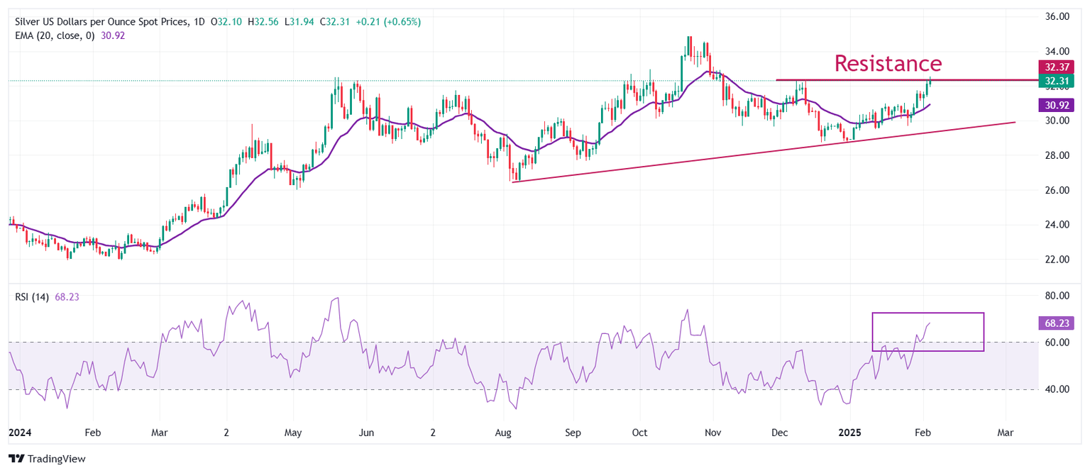 Mientras tanto, los inversores también dudan del panorama de la Plata en medio de la disminución de los temores de una guerra comercial global letal. Los participantes del mercado esperan que la guerra comercial se mantenga restringida entre China y EE.UU. Los inversores han interpretado la agenda arancelaria del presidente Donald Trump más como una herramienta de negociación después de su decisión de suspender la orden de imponer aranceles del 25% a Canadá y México.
