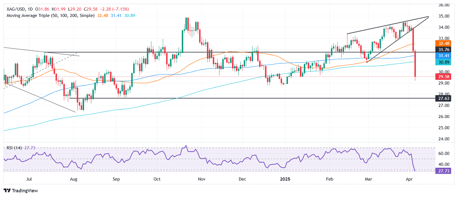 - La Plata rompe por debajo de las medias móviles simples (SMA) de 100 y 200 días, señalando un fuerte impulso bajista en medio de la escalada de la batalla arancelaria entre EE.UU. y China.