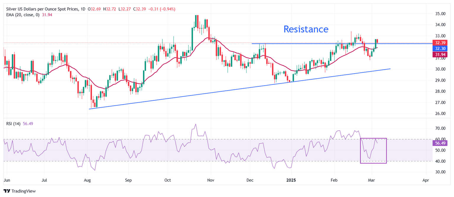 Plata Análisis del Precio: El XAG/USD corrige cerca de 32.40$ mientras Trump suspende los aranceles sobre automóviles