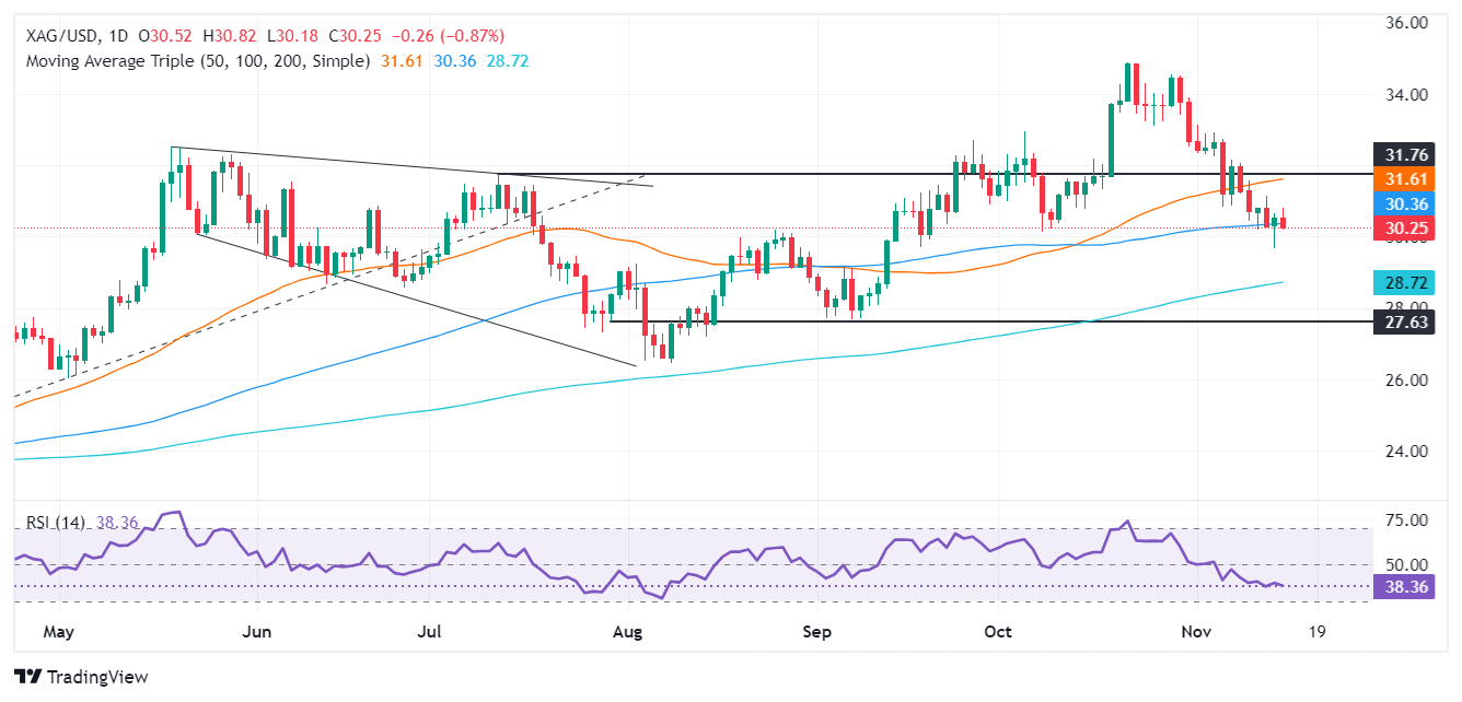 Análisis del Precio de la Plata: El XAG/USD mantiene un sesgo bajista, cae por debajo de 30.30$
