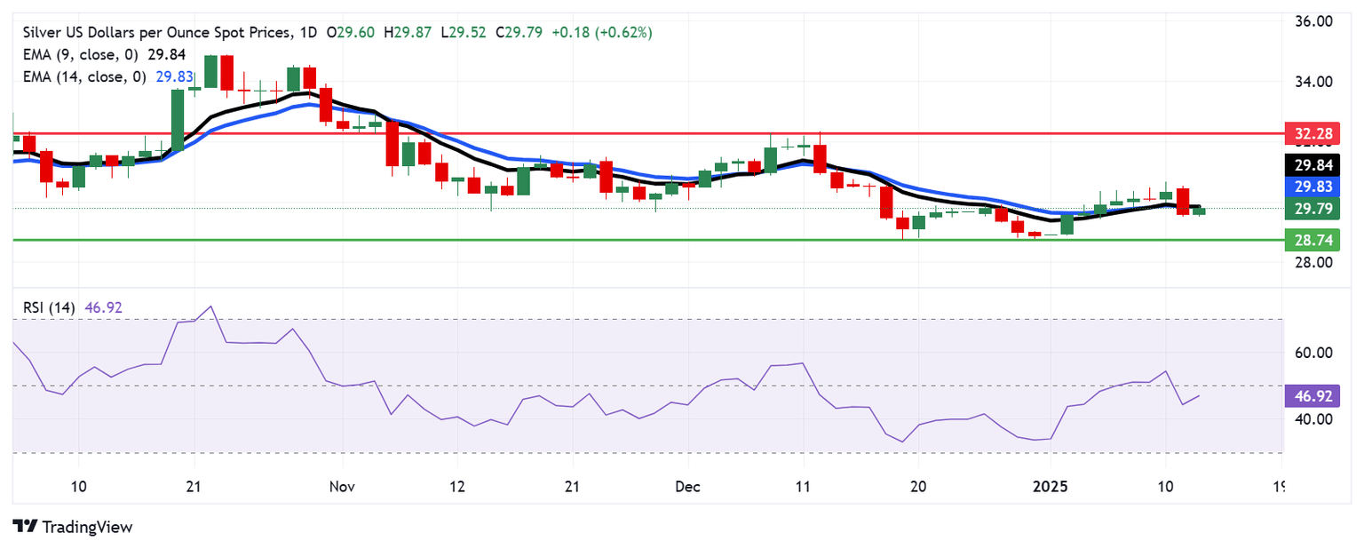 Plata Análisis del Precio: El XAG/USD prueba la EMA de 14 días cerca de 30.00$