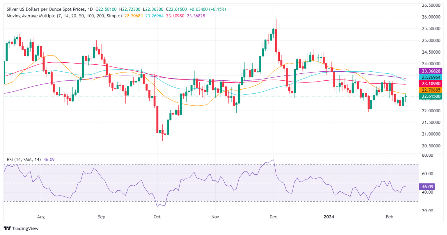 El par XAG/USD está sesgado a la baja, pero ha tocado fondo en torno a los 22.15$ - 22.50$, lo que ha abierto la puerta a una corrección al alza. Si los compradores pudieran elevar el precio hasta 23.00$ por onza troy, eso podría abrir la puerta para probar la media móvil de 100 días (DMA) en 23.09$, seguida de la DMA de 50 en 23.26$.