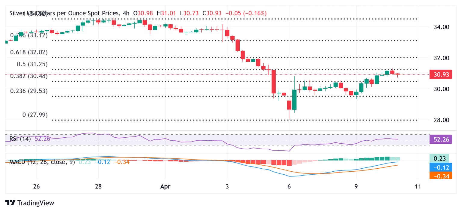 Plata Análisis del Precio: El XAG/USD retrocede desde el máximo semanal, regresa por debajo de 31.00$ antes del IPC de EE.UU.