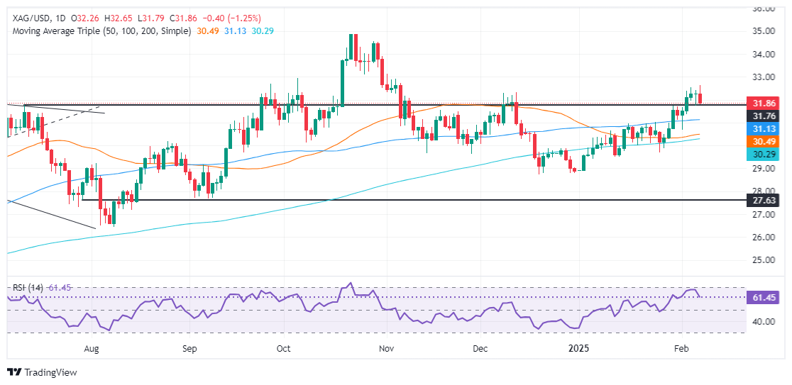 Análisis del Precio de la Plata: El XAG/USD retrocede desde máximos semanales, cae por debajo de 32.00$