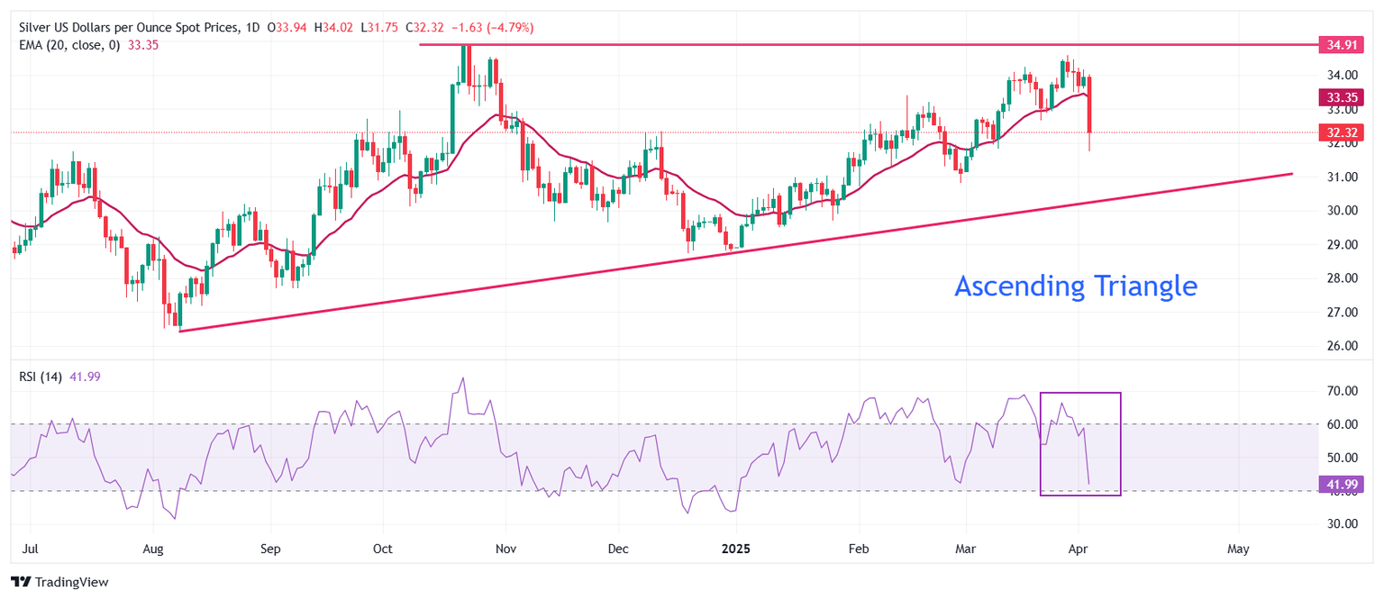 - El precio de la Plata cae verticalmente por debajo de 32.00$ después de que el presidente de EE.UU. Trump anuncia aranceles recíprocos.