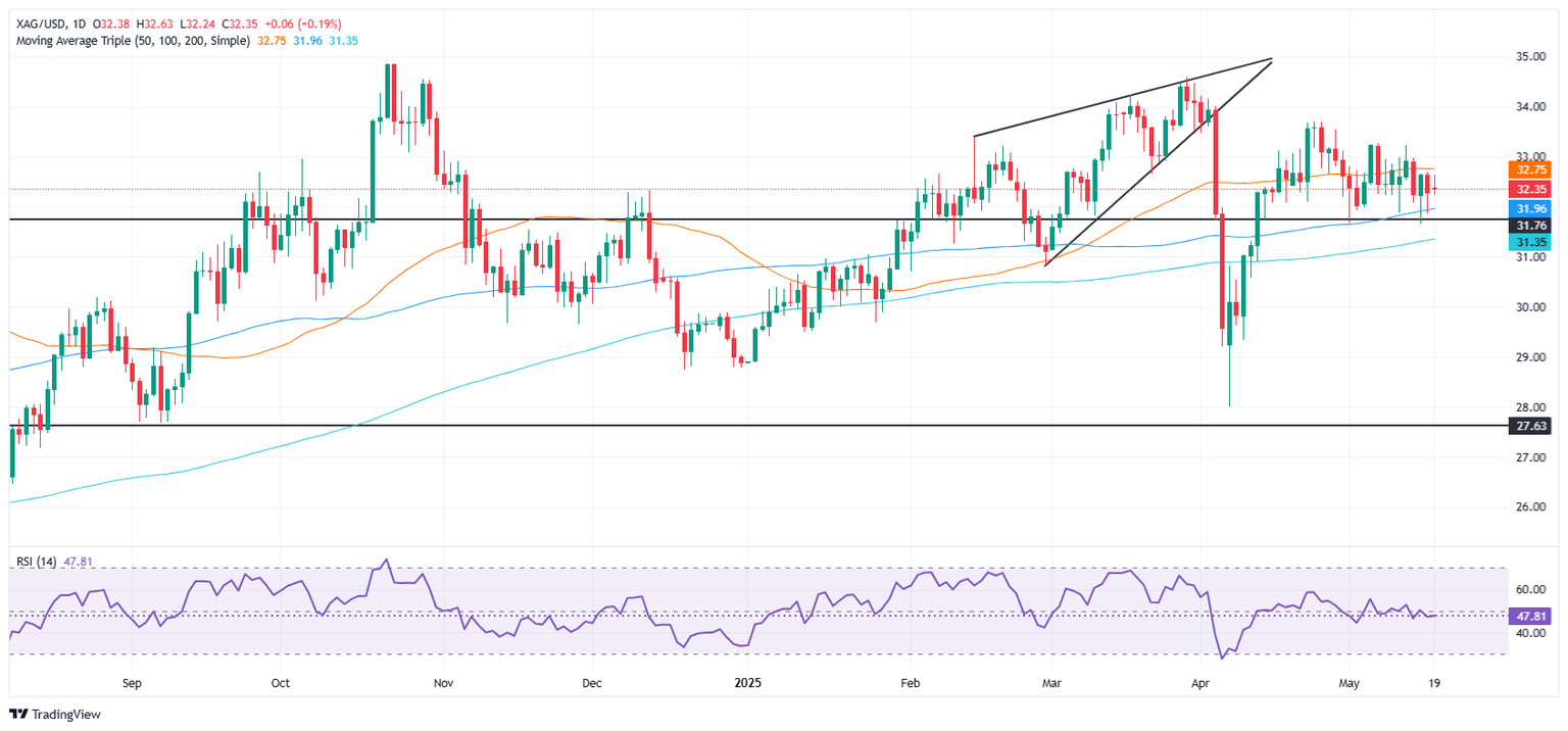 - El XAG/USD está atrapado en el rango de 31.50$–33.00$; los compradores apuntan a la SMA de 50 días en 32.73$ para recuperar impulso.