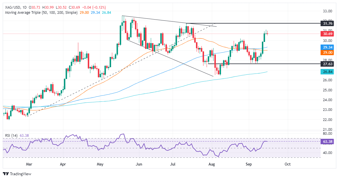 Plata Análisis del Precio: XAG/USD se mantiene contenido alrededor de 30,60$