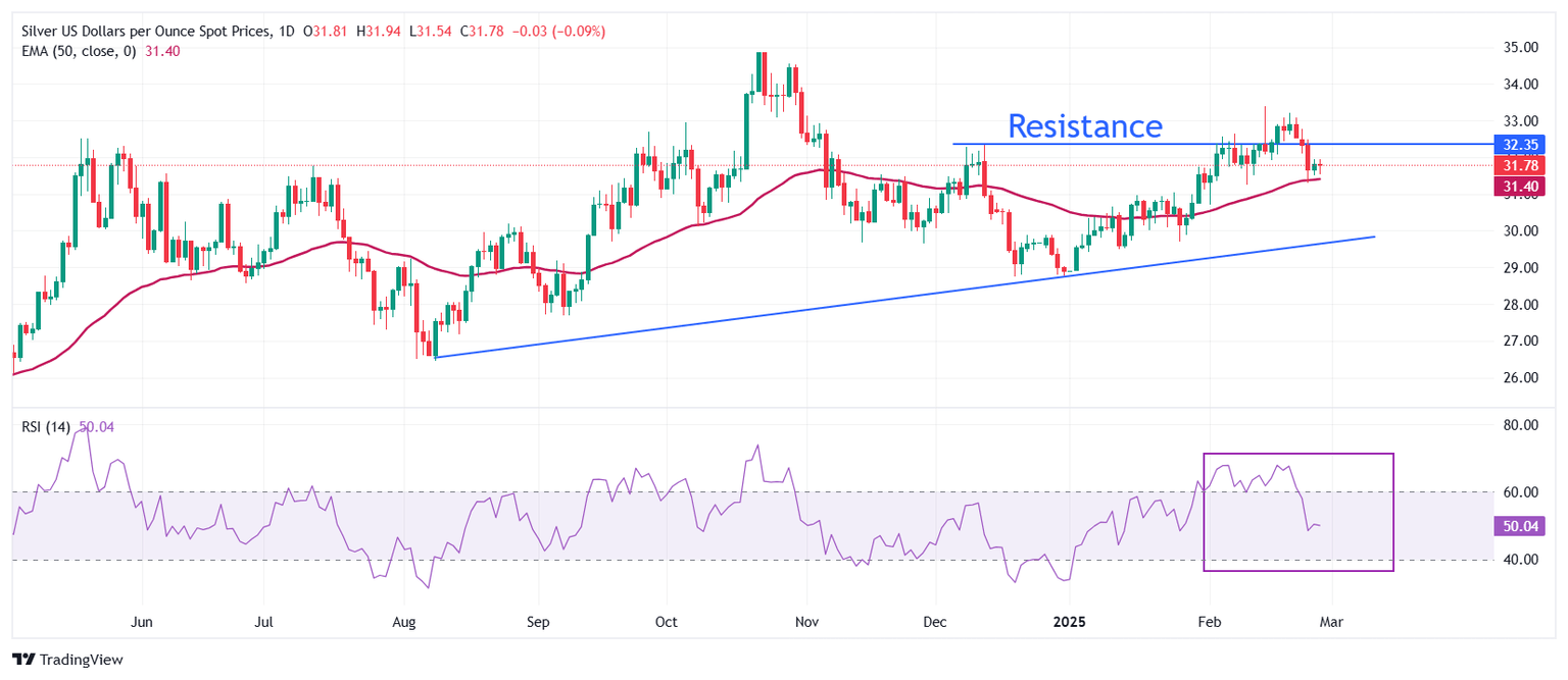- El precio de la Plata enfrenta presión alrededor de 32.00$ mientras los rendimientos de los bonos del Tesoro de EE.UU. ganan terreno antes de los datos de inflación del PCE de EE.UU. para febrero.