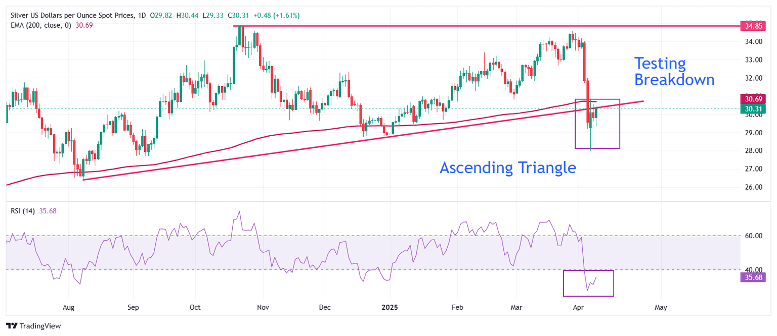 Plata Análisis del Precio: El XAG/USD se recupera por encima de 30$ mientras el Dólar estadounidense cae por la guerra arancelaria entre EE.UU. y China