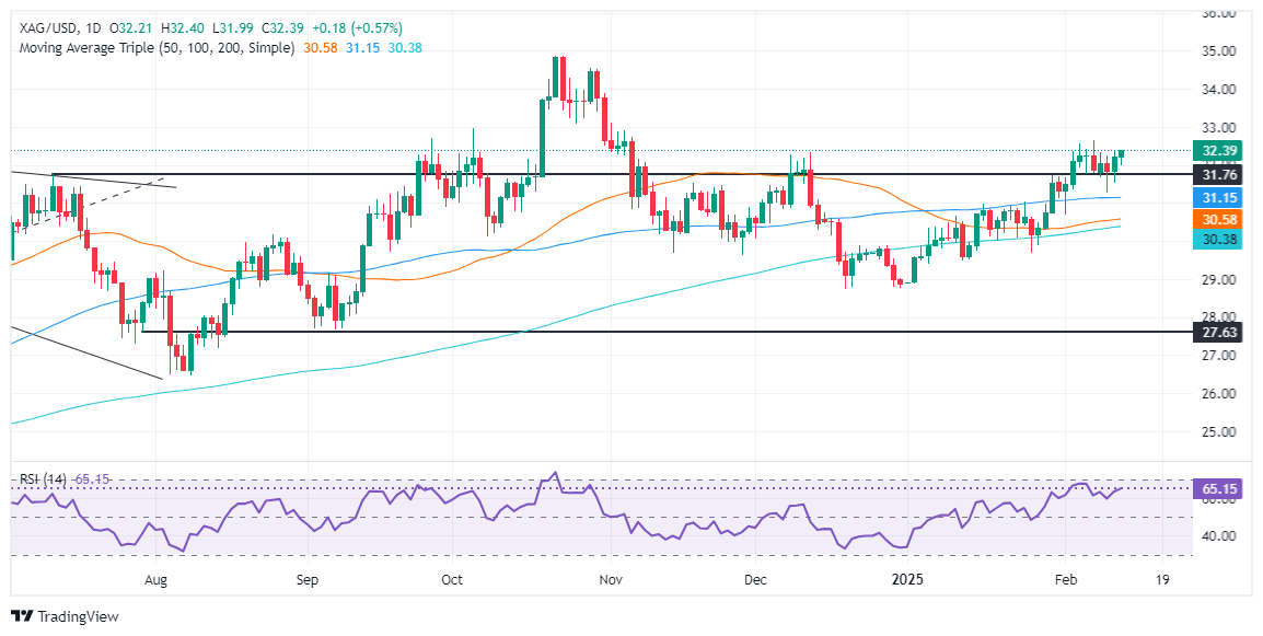 - El precio de la Plata sube a 32.37$, acercándose al máximo del 7 de febrero de 32.64$.
