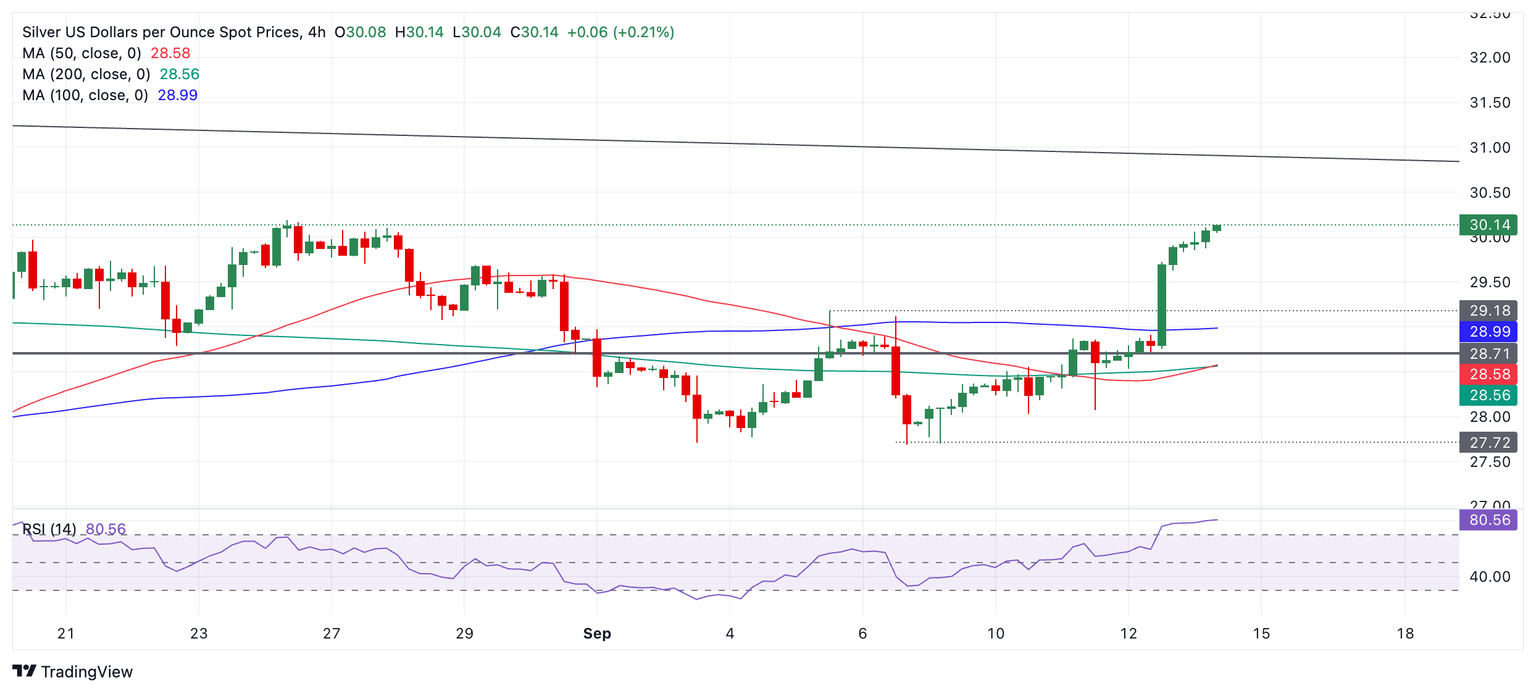 La Plata (XAG/USD) está negociándose en una pierna alcista hacia la parte superior de un amplio rango que se extiende desde los 26$ hasta los 30$.
