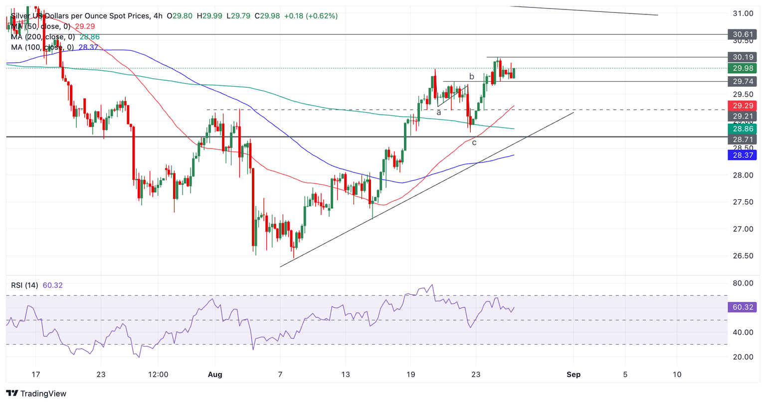 La Plata (XAG/USD) ha retrocedido después de alcanzar nuevos máximos para el mes de agosto en 30.19$.