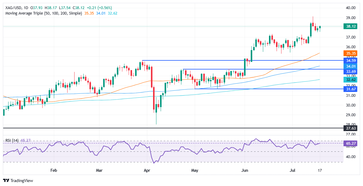 - La Plata se consolida cerca de 38.00$ mientras el impulso alcista se detiene a pesar de que el RSI favorece a los compradores.