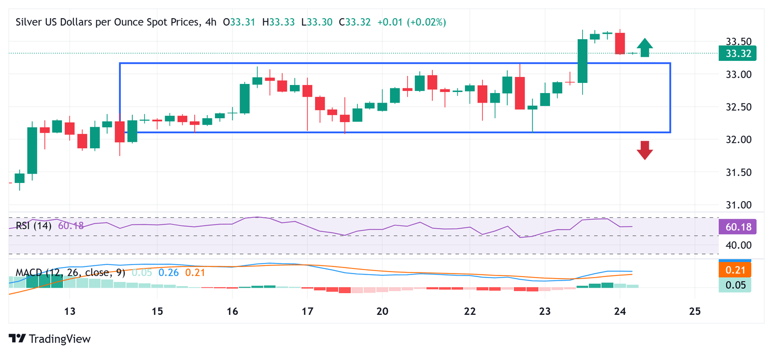 Plata Pronóstico del Precio: Los alcistas del XAG/USD tienen el control mientras estén por encima del punto de ruptura del obstáculo de 33.00$