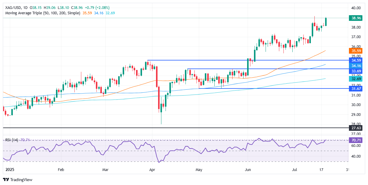 Pronóstico de la Plata: El XAG/USD se dispara un 2% hacia 39.00$ por la debilidad del Dólar