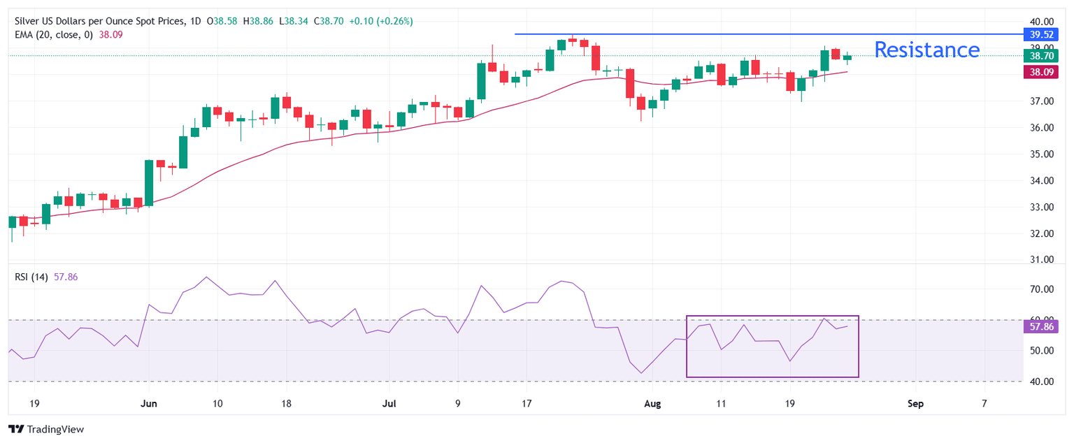 Plata Pronóstico del Precio: El XAG/USD sube cerca de 38.80$ a medida que la destitución de Cook de la Fed afecta el ánimo del mercado