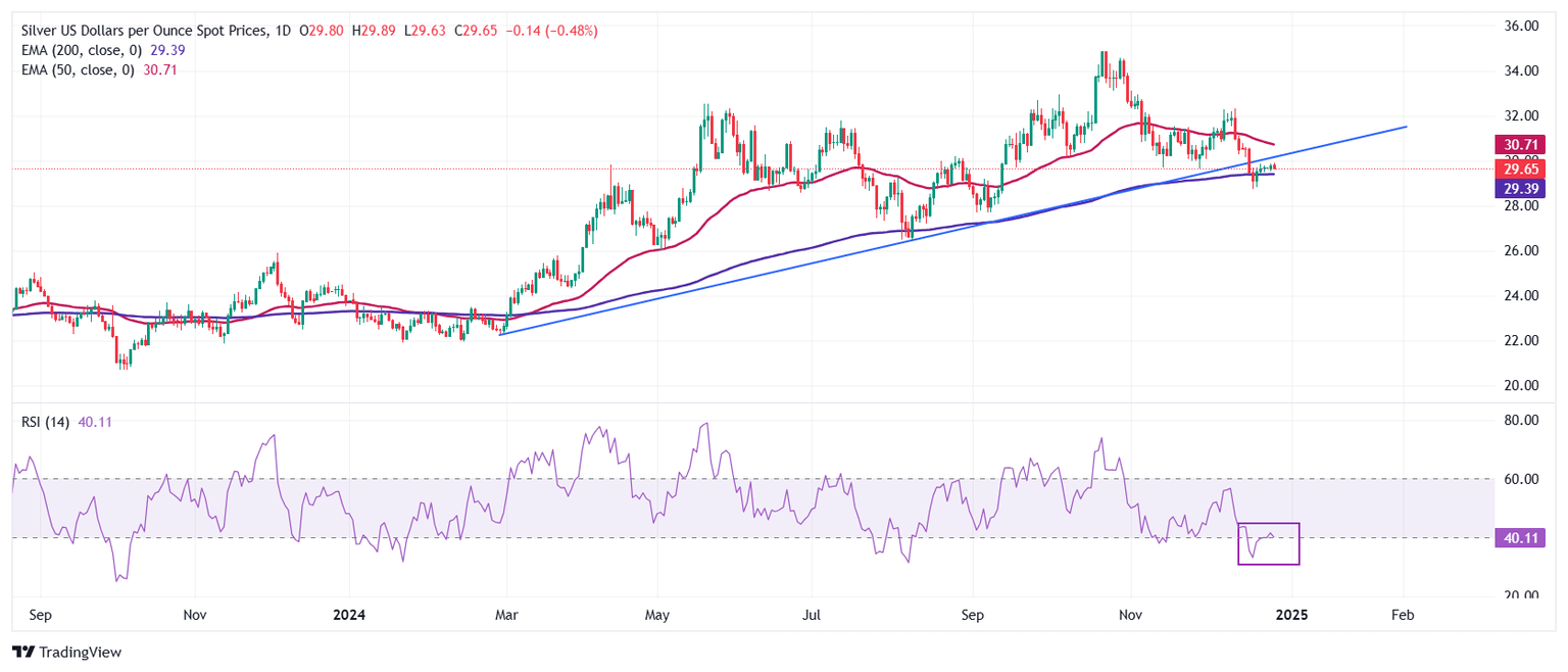 - El precio de la Plata cae bruscamente hasta cerca de 29,60$ mientras los rendimientos de los bonos estadounidenses suben ante las expectativas de que la Fed seguirá un ciclo gradual de recorte de tasas en 2025.