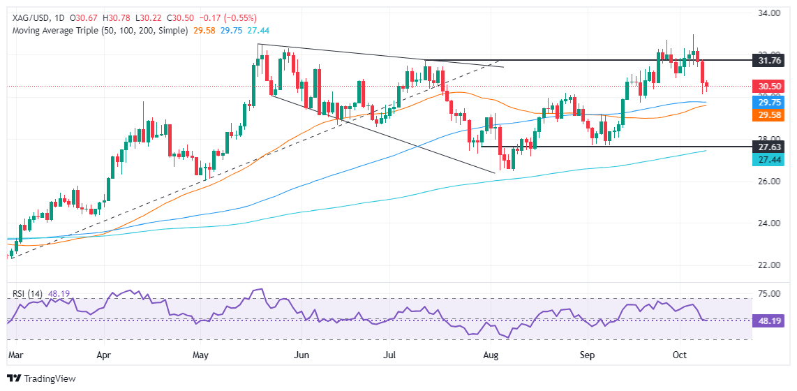 Plata Pronóstico del Precio: XAG/USD desciende lentamente y se mantiene por encima de 30,00$