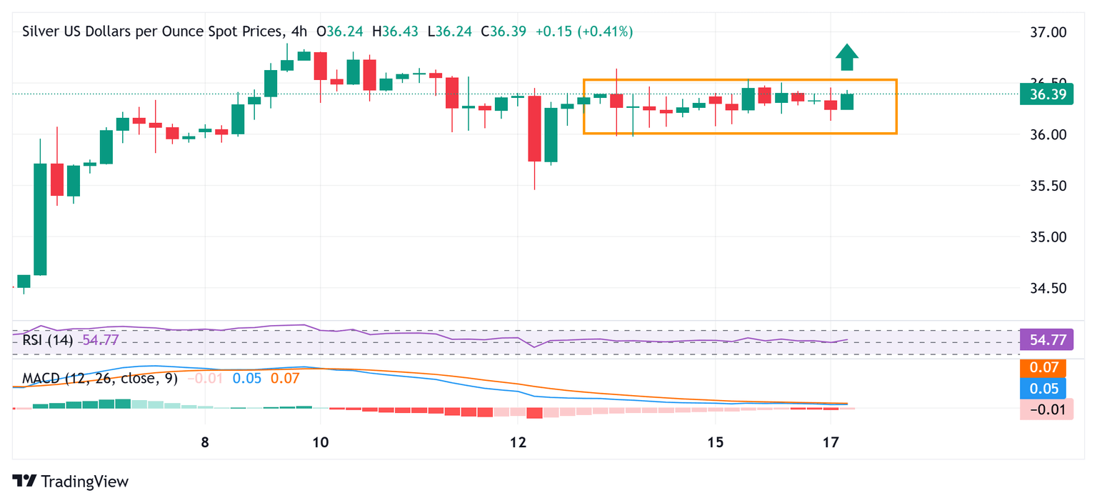 Plata Pronóstico del Precio: El XAG/USD opera por debajo de 36.50$; el potencial alcista parece intacto