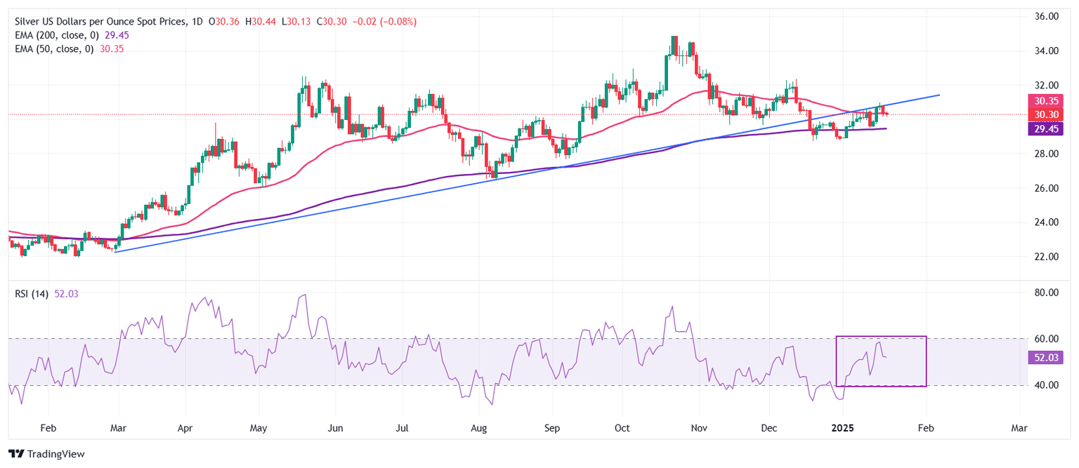 Plata Pronóstico del Precio: El XAG/USD oscila por encima de 30.00$ con la investidura de Trump en el horizonte