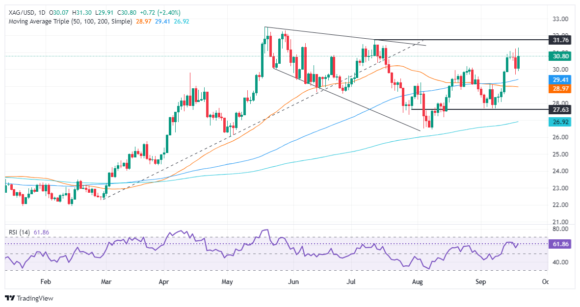 Plata Pronóstico del Precio: XAG/USD se dispara mientras el recorte de tasas de la Fed impulsa el repunte hacia los 31,00$