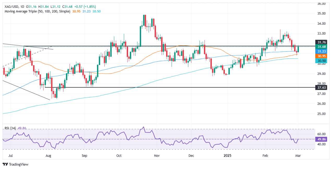 - El XAG/USD recupera 31.50$, ya que la incertidumbre sobre los aranceles eleva la demanda.