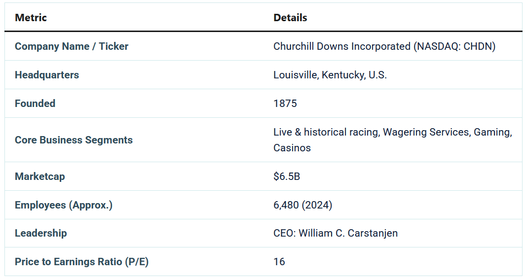 Churchill Downs es conocido principalmente como el lugar donde se lleva a cabo el Kentucky Derby y otras carreras de caballos cada año. Pero también tiene otros activos, incluidos casinos y lugares de carreras en Pennsylvania, Iowa, Maryland, Nueva York, Virginia, Illinois, Mississippi y Kentucky.