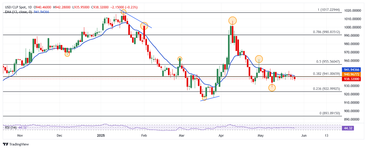 El USD/CLP reaccionó la baja desde máximos del 23 de mayo en 942.28, donde encontró vendedores agresivos que arrastraron la paridad a mínimos no vistos desde el 14 de mayo en 936.25. Al momento de escribir, el USD/CLP cae un 0.22%, operando actualmente sobre 935.95.