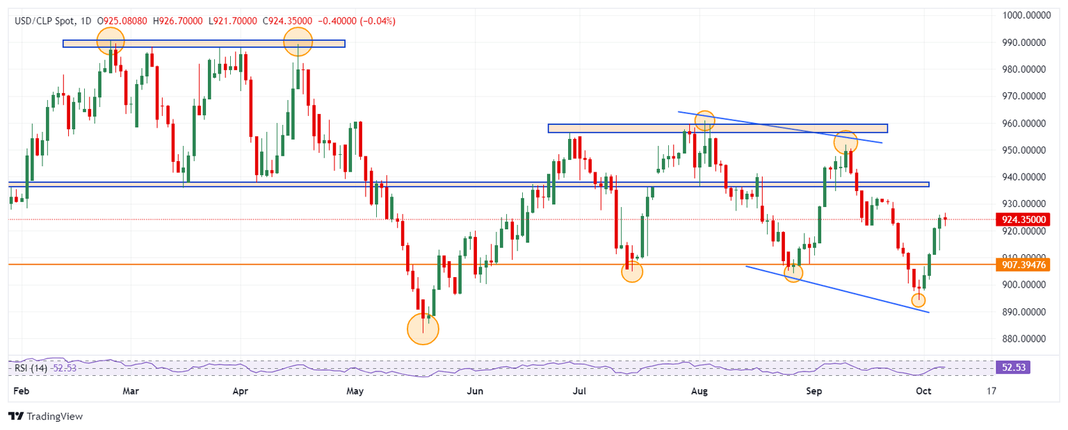 El USD/CLP marcó un mínimo diario en 921.70, encontrando compradores que llevaron la paridad a un máximo de dos semanas en 926.70. Actualmente, el Dólar estadounidense cotiza sobre 924.12 frente al Peso chileno, cayendo un 0.07% en el día.