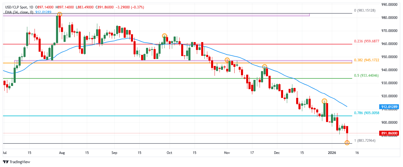 El USD/CLP estableció un máximo del día en 897.14, atrayendo vendedores que llevaron la paridad a mínimos no vistos desde el 20 de mayo de 2024 en 883.49. Actualmente, el USD/CLP cotiza sobre 891.15, cayendo un 0.45% en la jornada del lunes.