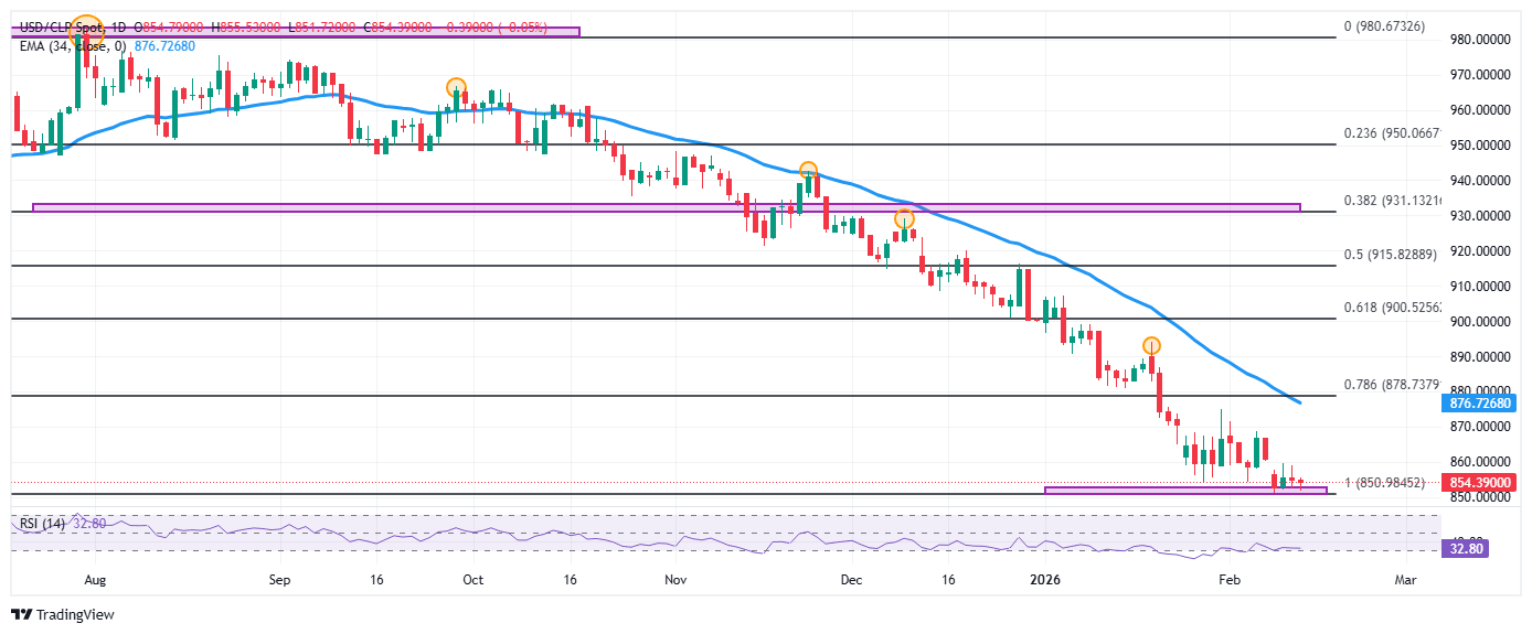 El USD/CLP estableció un máximo diario en 855.53, atrayendo vendedores que llevaron a paridad a mínimos del 9 de febrero en 851.72. Al momento de escribir, el USD/CLP cotiza en 854.20, cayendo un 0.06% el día de hoy.