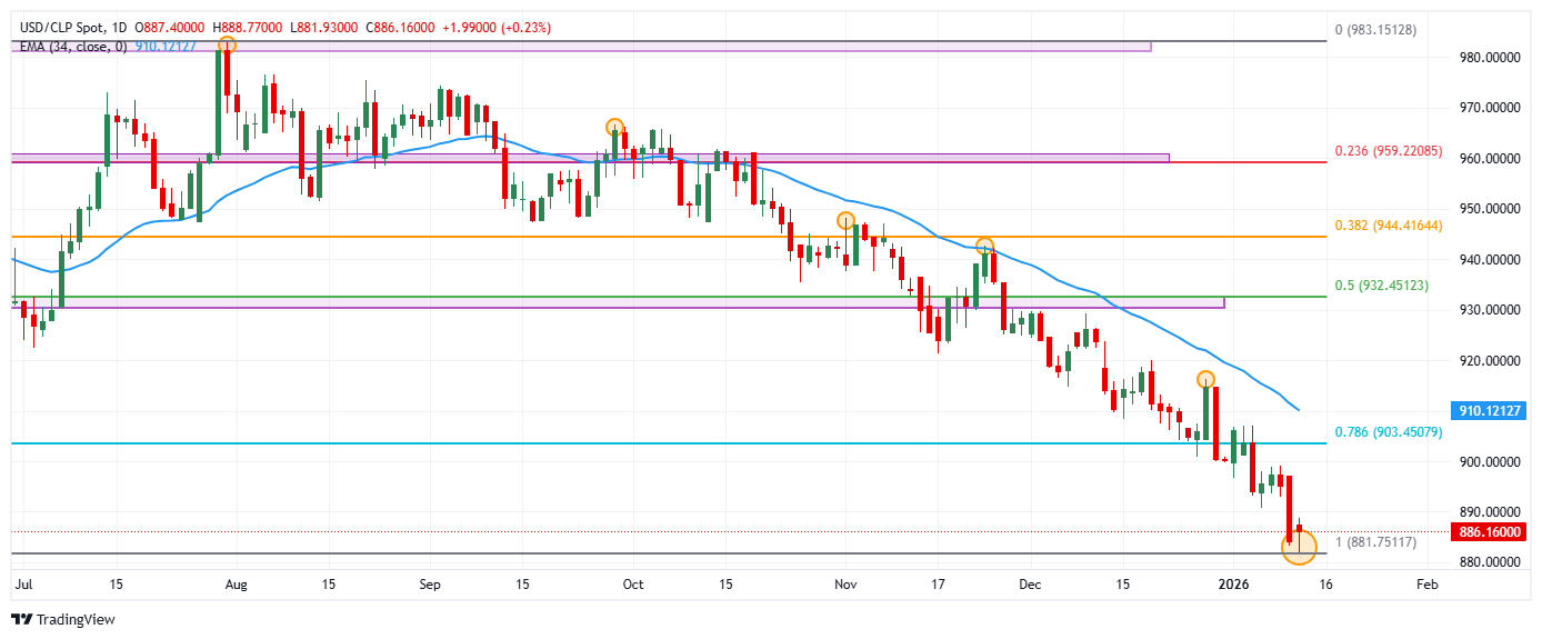 En este sentido, el Peso chileno finaliza una racha de dos sesiones consecutivas al alza, en tanto que el USD/CLP rebota desde mínimos del 20 de mayo de 2024 en 881.93.