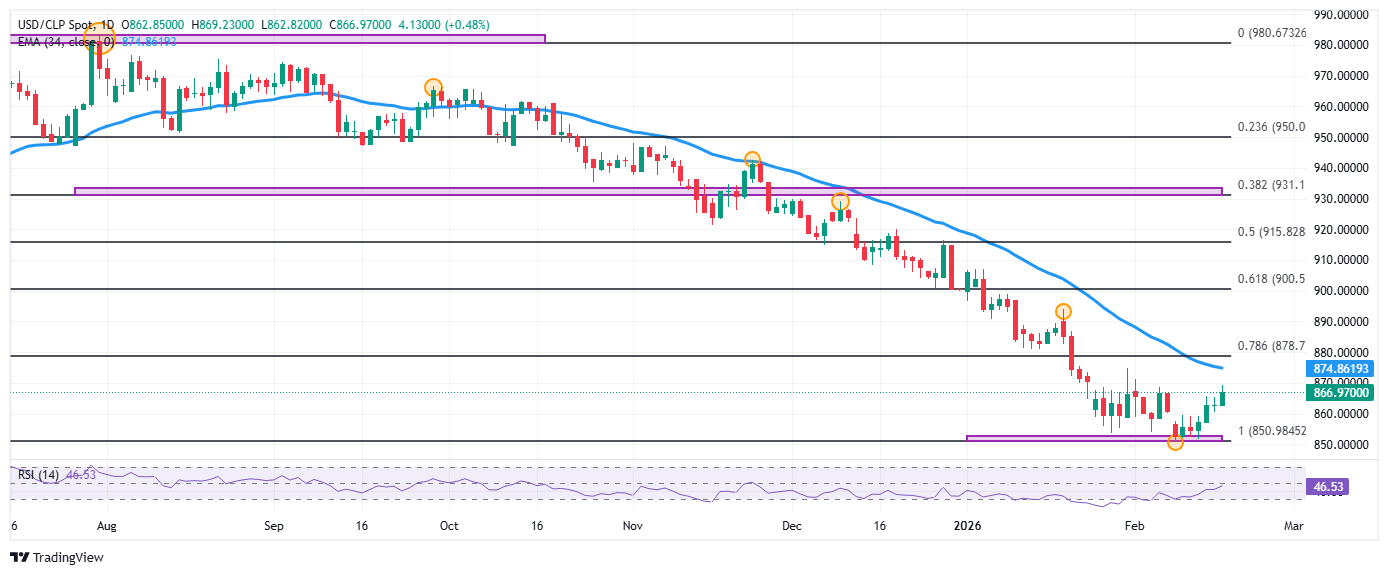 El USD/CLP marcó un mínimo del día en 86.282, encontrando compradores que impulsaron la paridad a máximos del 2 de febrero en 869.23. En estos momentos, el USD/CLP opera sobre 866.36, ganando un 0.42% en la jornada del martes.