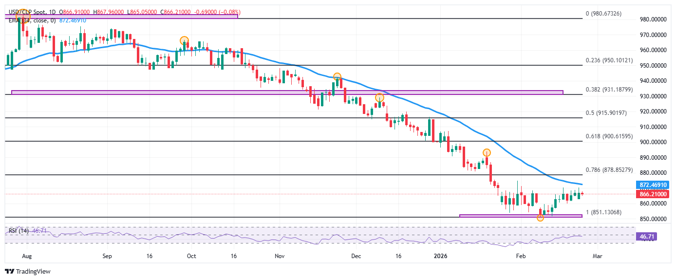- El Dólar estadounidense cae frente al Peso chileno, negociándose actualmente en 865.67.