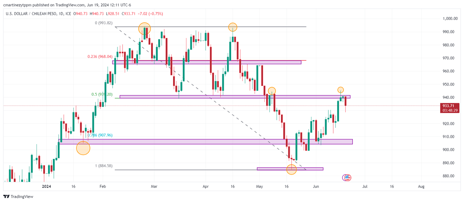 - El USD/CLP rechaza la resistencia clave de mediano plazo en 940.00.