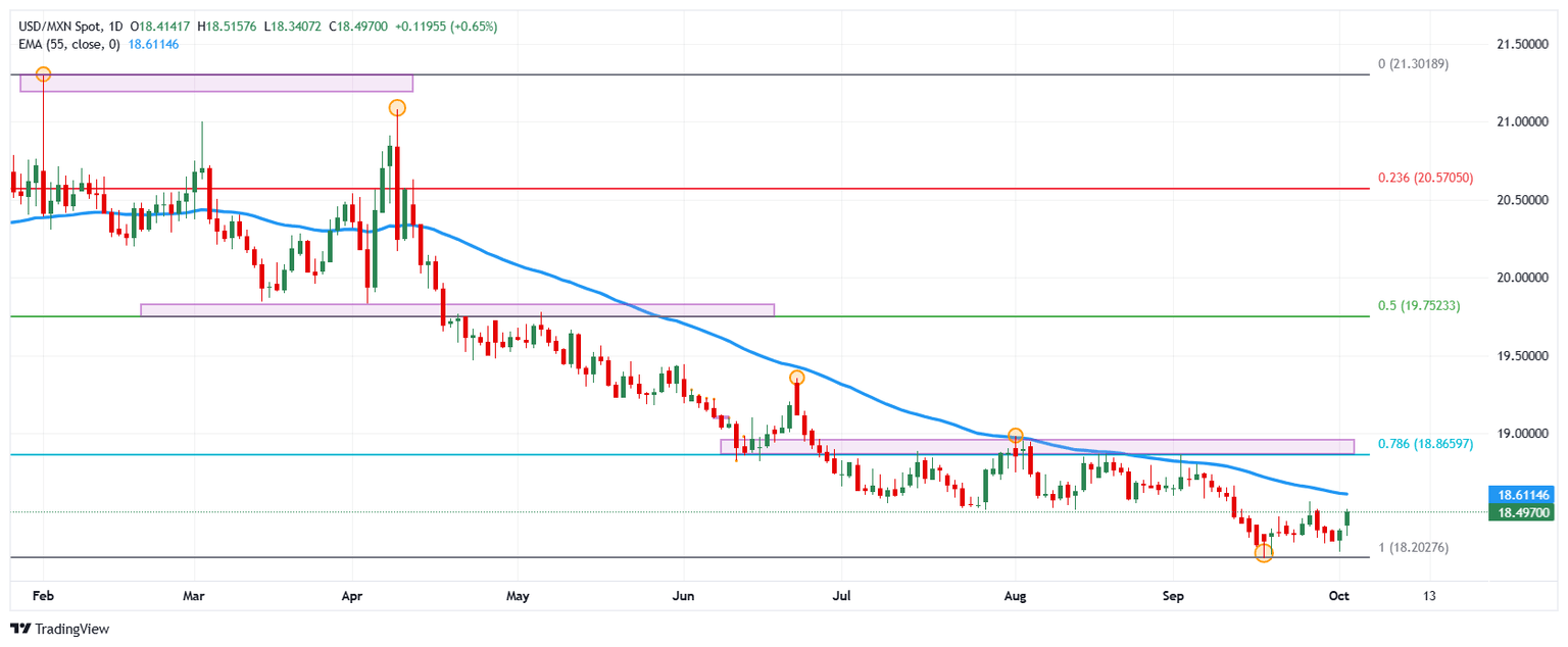 - El USD/MXN sube un 0.65% el día de hoy, alcanzando máximos del 26 de septiembre en 18.5157.