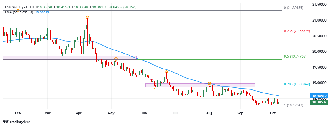 - El USD/MXN avanza un 0.20% el día de hoy, consolidándose dentro del rango del 6 de octubre en 18.3845.