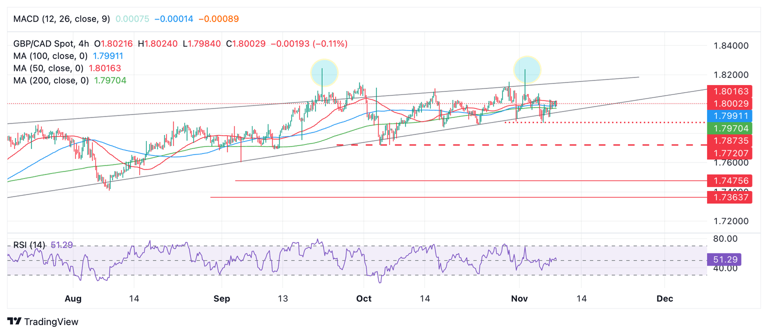 El GBP/CAD se recupera para volver a operar dentro de su patrón de cuña ascendente después de caer temporalmente por debajo de la línea de límite inferior. Permanece vulnerable a una ruptura a la baja.